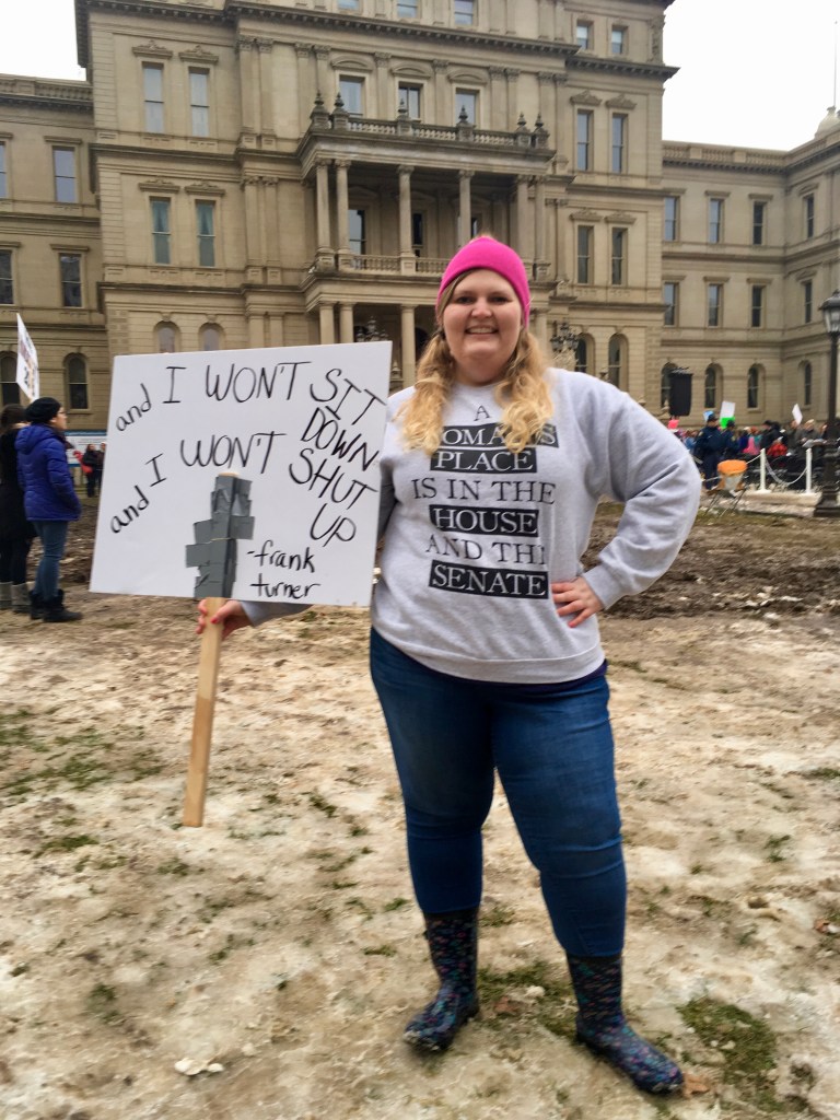 There are also some physical ways in which I’ve cemented my relationship between fashion and feminism. I purchased one of my favorite sweatshirts in the world just after the first Women’s March – pictured below, it says “A Woman’s Place is in the House and the Senate.” I wear pink lipstick and a pink hat to marches and rallies in solidarity with others. I want to prove that women are multifaceted – we can wear makeup and accessories, do our hair, obsess over current fashion, and still take down the patriarchy. We are powerful creatures, and just because we love Project Runway and shopping at Ulta doesn’t mean we can’t also be strong activists.